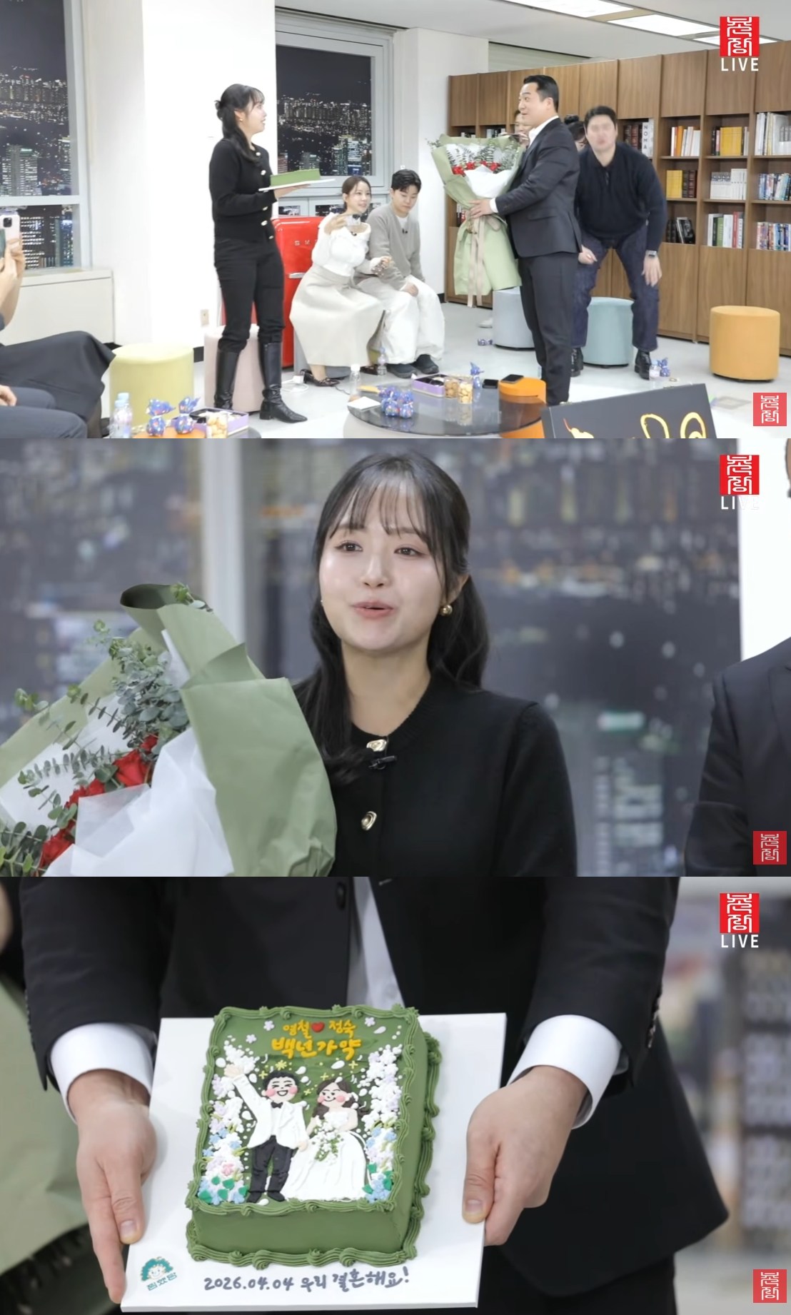 프러포즈 이벤트와 함께 공개된 주문제작 케이크 또한 눈길을 끌었다. 청첩장을 모티브로 제작된 케이크는 두 사람이 결혼을 앞둔 예비부부라는 점을 실감케 했고, 디테일한 디자인으로 로맨틱한 분위기를 배가시켰다.