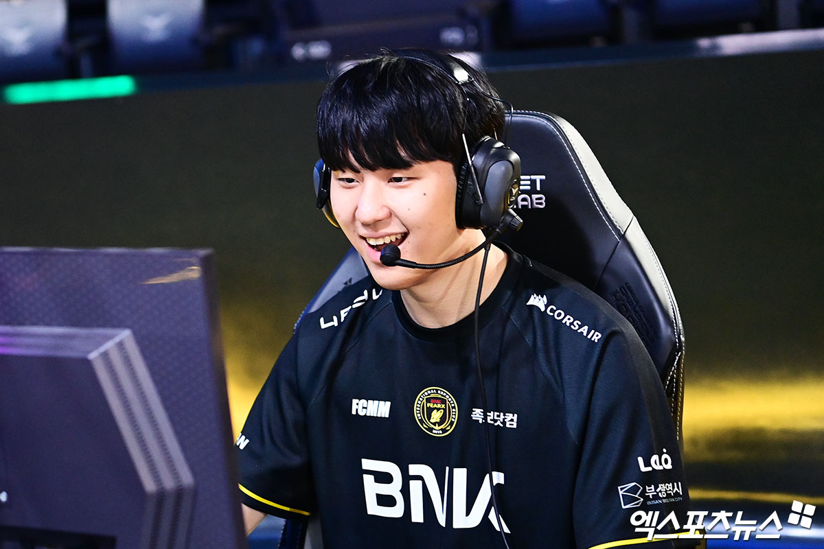 (엑스포츠뉴스 종로, 박지영 기자) 22일 오후 서울 청진동 롤파크에서 열린 '2026 LCK컵' 젠지와 BNK 피어엑스의 경기, BNK '랩터' 전어진이 경기를 준비하고 있다.