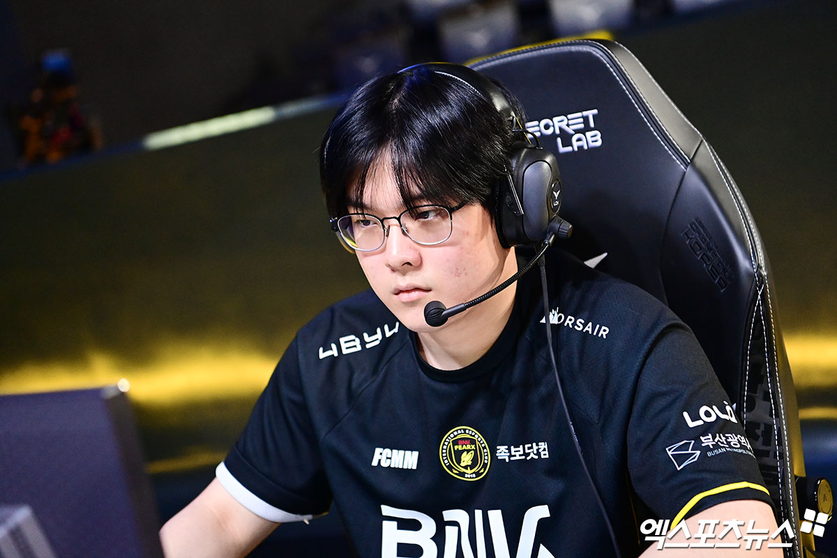 (엑스포츠뉴스 종로, 박지영 기자) 22일 오후 서울 청진동 롤파크에서 열린 '2026 LCK컵' 젠지와 BNK 피어엑스의 경기, BNK '빅라' 이대광이 경기를 준비하고 있다.