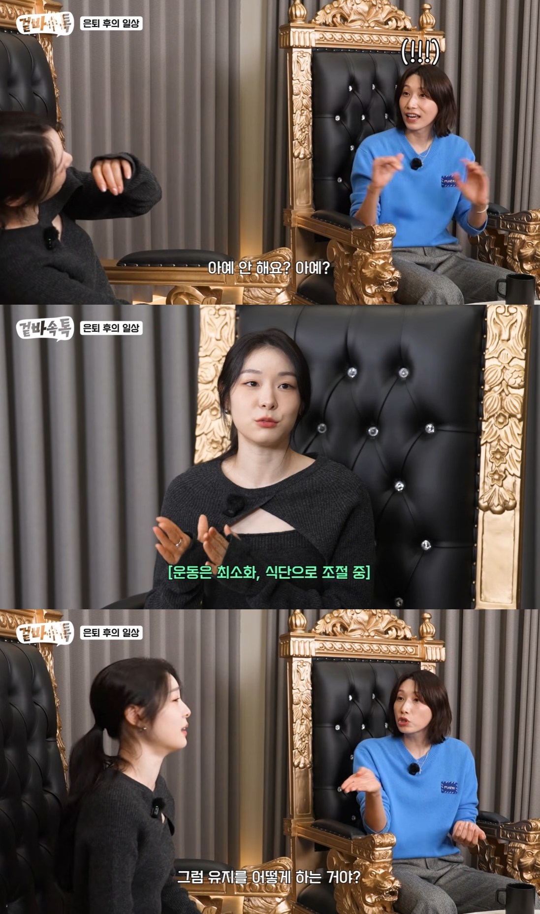 반대로 김연아는 "이제는 건강을 위해 운동을 해야 한다고 생각은 하는데, 몸이 안 따라주는 것 같다. 아예 안 하는 것 같다"고 고백했다.