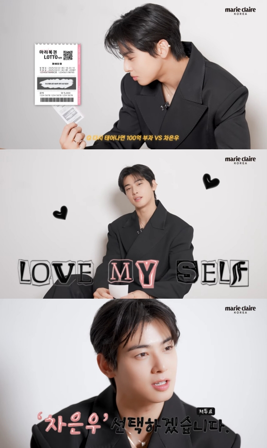 이에 수줍게 웃던 차은우는 "저는 그래도 러브 마이셀프(Love Myself)로 차은우를 선택하겠다"며 100억 부자가 아닌 차은우를 골랐다.