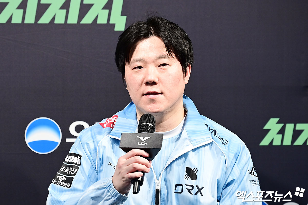 경기 종료 후 DRX '조커' 조재읍 감독이 인터뷰를 하고 있다.