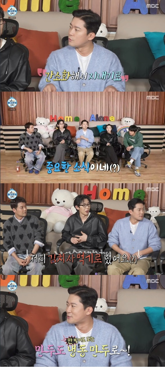 김대호는 김치는 사 먹기로 했고 만두도 냉동만두로 먹기로 했다고 전하며 웃었다.