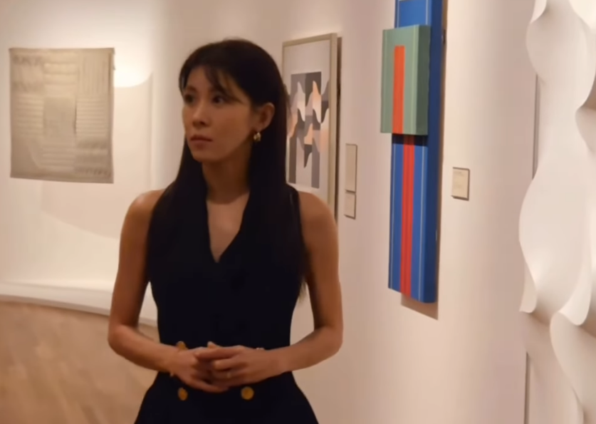 사진 속 하지원은 싱가포르 국립 미술관에서 전시된 작품들을 관람하고 있다.
