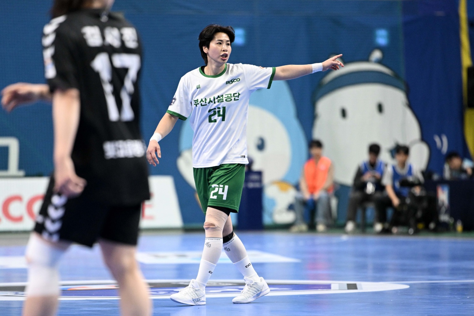 부산시설공단 신창호 감독이 승기를 굳히기 위해 4골 차로 앞서는 상황에서 작전타임을 요청하고 선수들을 독려했다. 이후 문수현의 연속 골로 24-18, 6골 차까지 달아나자, 부산시설공단이 벤치 멤버를 기용하며 로테이션을 가동했다.