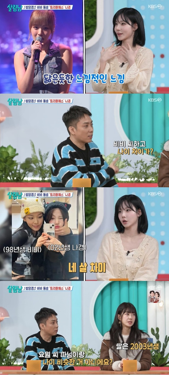 김나경은 "닮았어요?"라고 물어보면서 언니 비비와의 나이 차이가 4살이라고 말했다.