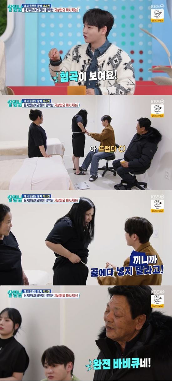 박서진은 환복하고 나온 어머니와 박효정에게 "이거 그냥 마사지가 아니다. 다이어트에 도움이 되는 마사지다"라고 한껏 생색을 냈다.