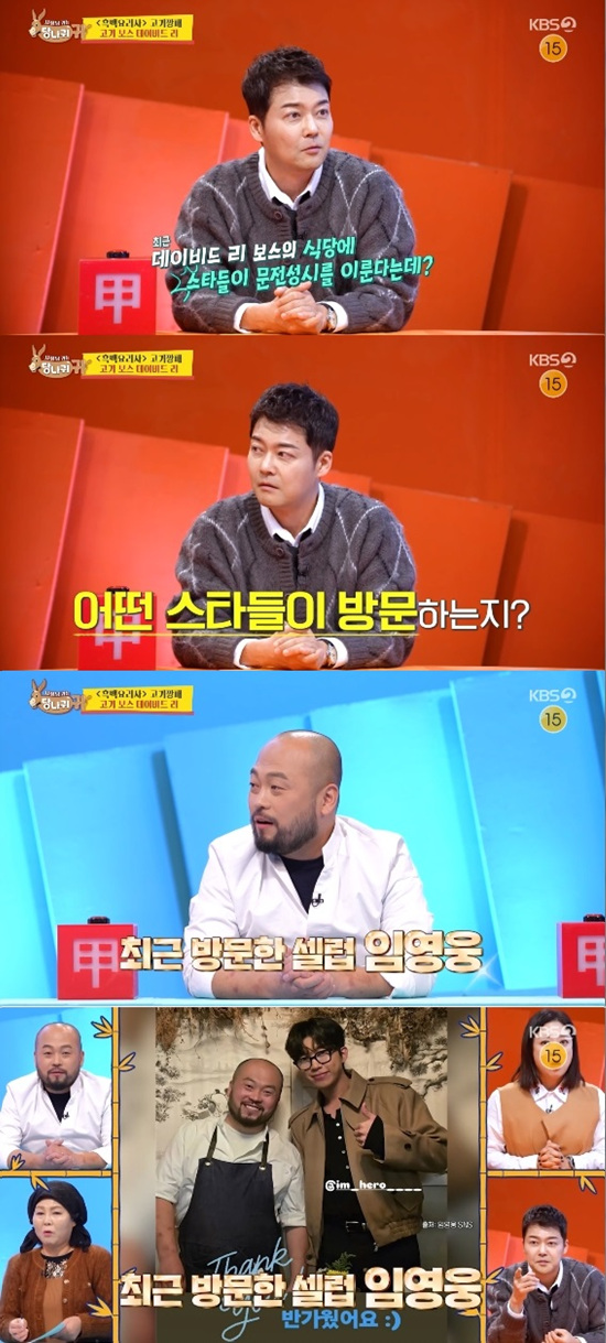 25일 방송된 KBS 2TV '사장님 귀는 당나귀 귀'에서는 데이비드 리가 임영웅이 식당에 방문한 일화를 공개해 눈길을 끌었다.
