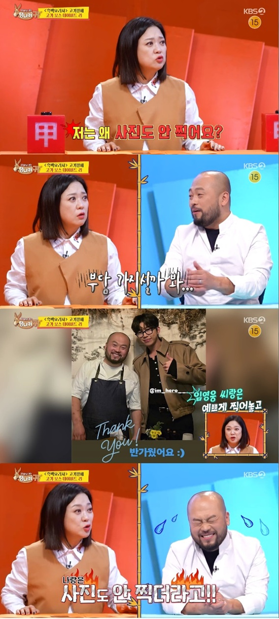 김숙은 "임영웅 씨랑은 예쁘게 찍어놓고 나랑은 사진도 안 찍더라"라며 계속 서운한 마음을 드러냈다.