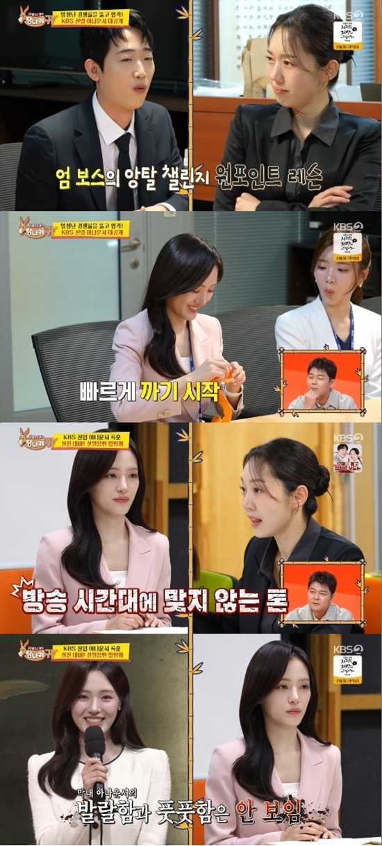 엄지인은 신입 아나운서들의 영상 합평회를 진행했다. 가장 먼저 박효진의 영상이 공개됐다.