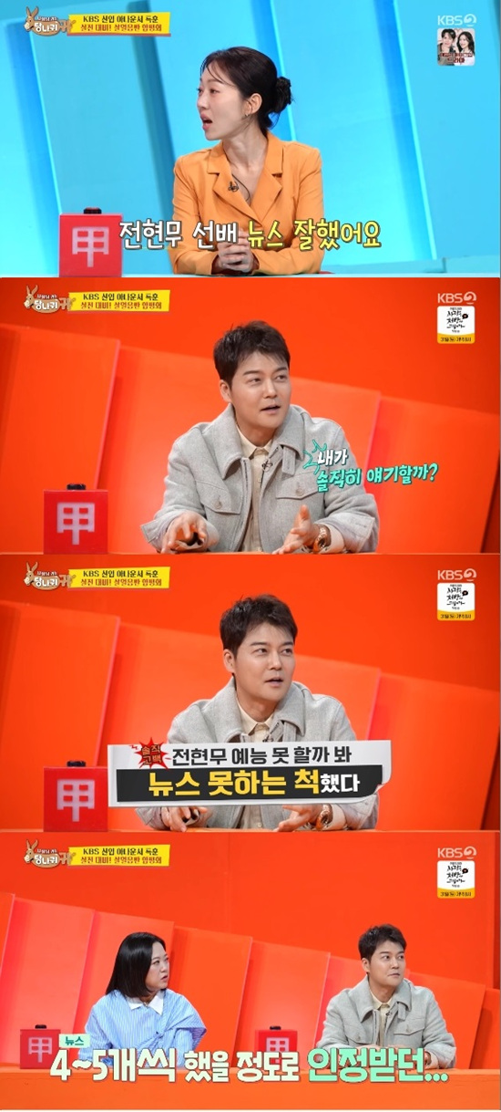 25일 방송된 KBS 2TV '사장님 귀는 당나귀 귀'에서는 전현무가 아나운서 시절 뉴스를 못하는 척했다고 밝히는 모습이 전파를 탔다.