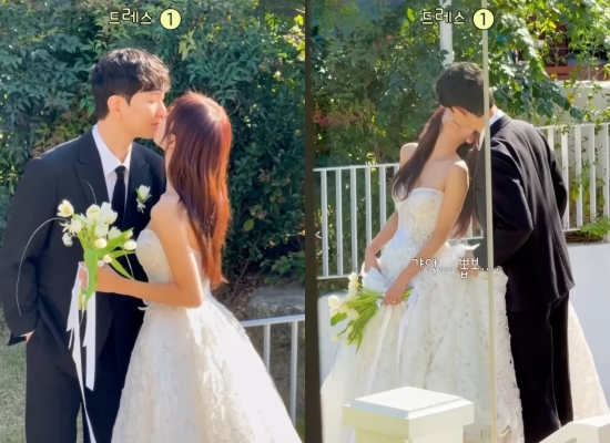 '혼전임신' 김지영, CEO 예비신랑과 스킨십 폭발…웨딩화보 비하인드 [★해시태그]