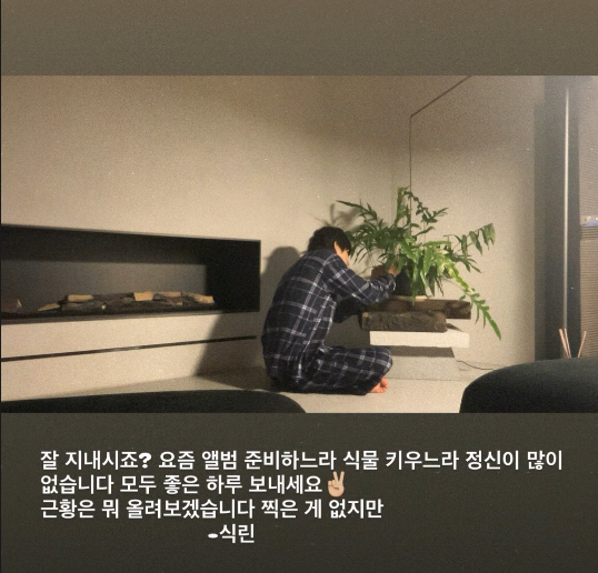 25일 뷔는 개인 계정에 "잘 지내시죠? 요즘 앨범 준비하느라 식물 키우느라 정신이 많이 없습니다. 모두 좋은 하루 보내세요"라고 적었다.