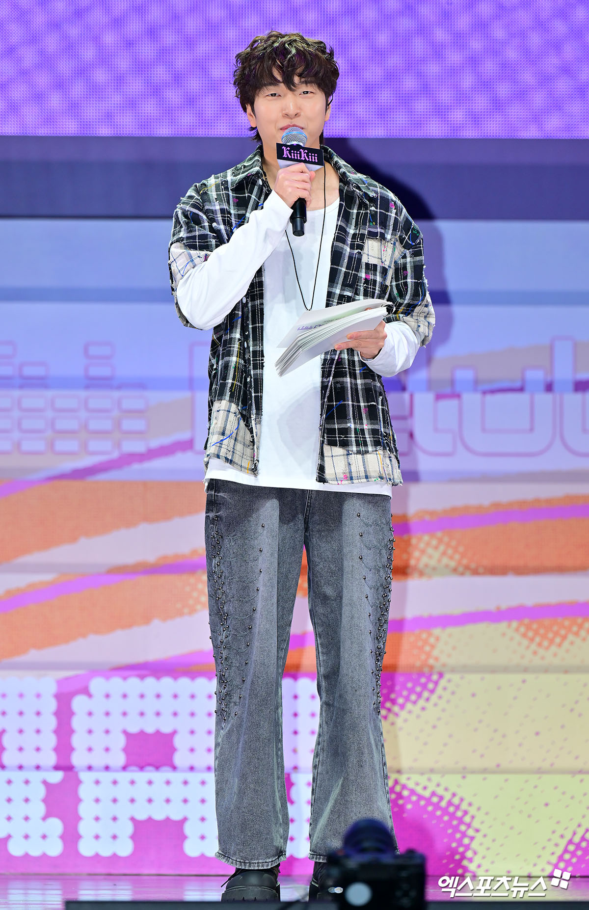 이날 쇼케이스에 참석한 유재필이 사회를 보고 있다.