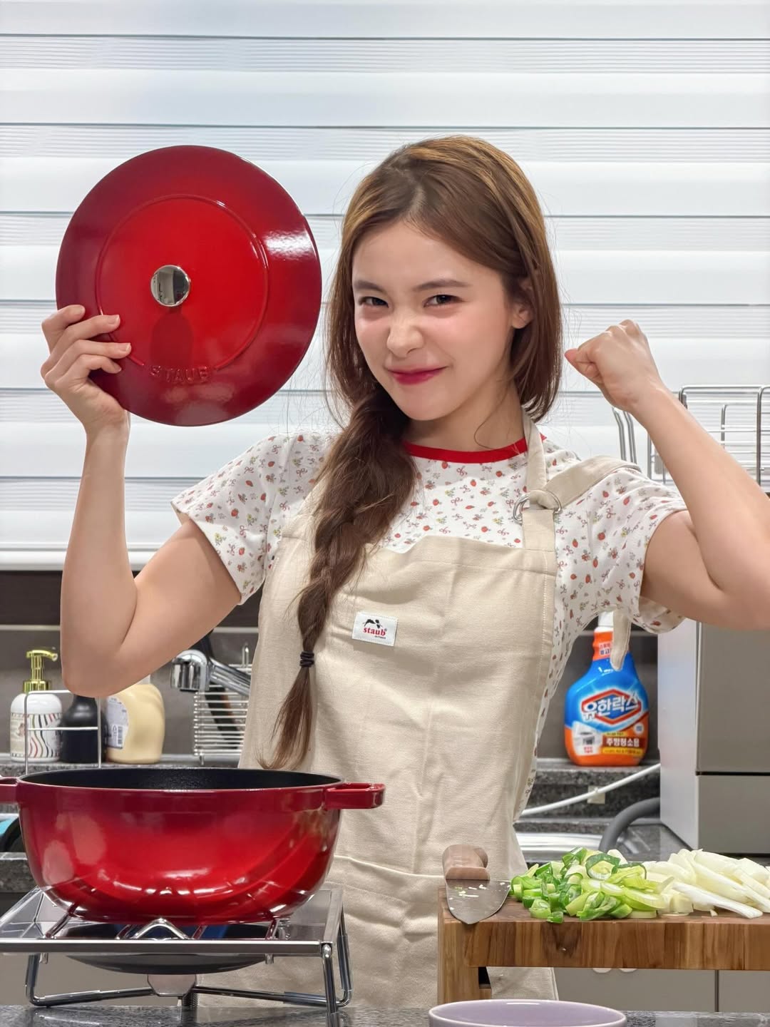 공개된 사진 속 이다혜는 주방과 거실 공간에서 직접 요리를 즐기는 모습을 자연스럽게 담아냈다. 붉은색 냄비를 들고 포즈를 취하거나, 완성된 요리를 앞에 두고 장난기 어린 표정을 짓는 등 평소 무대 위 모습과는 또 다른 친근한 매력을 드러냈다. 특히 편안한 홈웨어 차림에도 군살 없는 몸매와 밝은 미소가 시선을 끌며 자신의 미모를 과시했다.