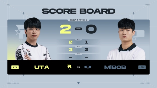 첫 번째 경기는 그룹C M1 KT롤스터(KT) 'UTA' 이지환 선수와 디플러스 기아(DK) 'MiBOB' 김태현 선수의 대결.