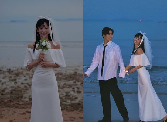 바닷가에서 깔끔한 수트와 웨딩 드레스를 입은 웨딩 스냅도 함께 공개한 그는 "낭만있게 잘 살겠다"는 소감도 전했다.