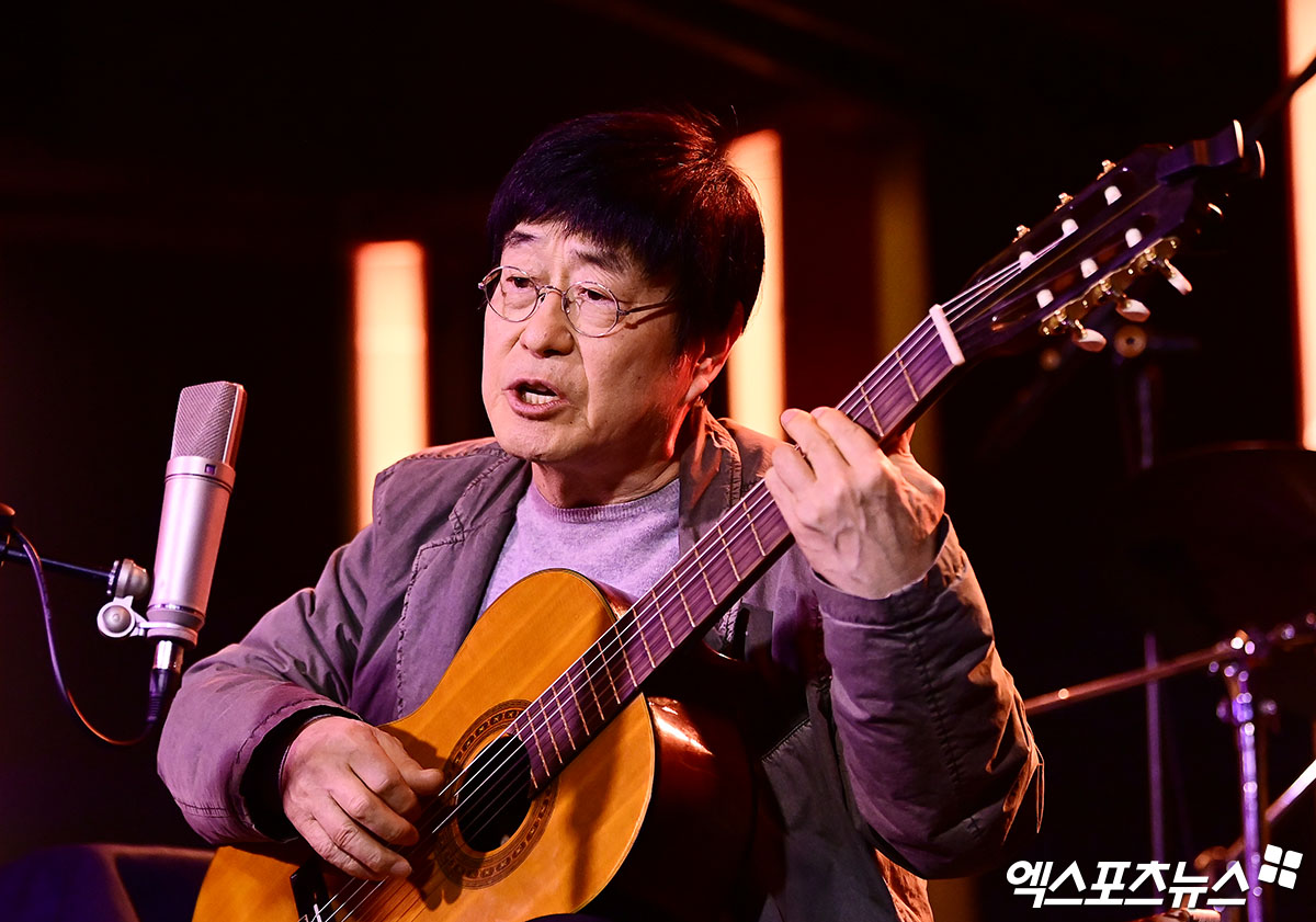 이날 김창완은 '세븐티' 뮤직비디오 공개 이후 '청춘'을 현장에서 기타 연주와 함께 선보였다. 그는 "제가 최근에 참 예쁜말을 들었다. 막내딸 9살 터울인데 엄마한테 언니가 참 부럽다고 하더라. 이렇게 좋은 엄마를 9년이나 일찍 만났으니 얼마나 부럽냐고 했다"며 "효자 이야기 많이 하는데 저는 이렇게 예쁜 말은 들어본 적이 없다. 너무 놀랐다. 나한테 형이 있으면 저렇게 부러워할까 그런 생각이 들었다"고 했다.