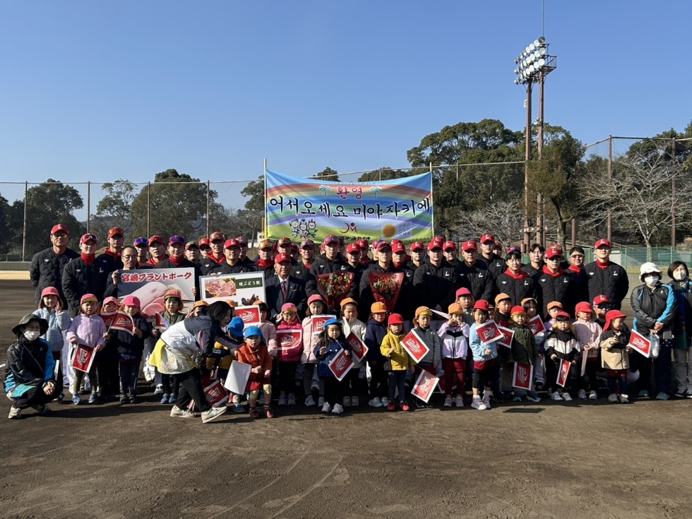 본격적인 훈련에 앞서 니시키바루 야구장에서 열린 이번 환영행사는 SSG 퓨처스팀의 방문을 기념하고 성공적인 캠프 완수를 기원하기 위해 아야초 측의 제안으로 마련됐다. 행사에는 SSG 박정권 퓨처스팀 감독을 비롯한 코칭스태프 및 선수단 전원과 미야자키현 아야초 초장 등 관계자 20여명이 참석했다.