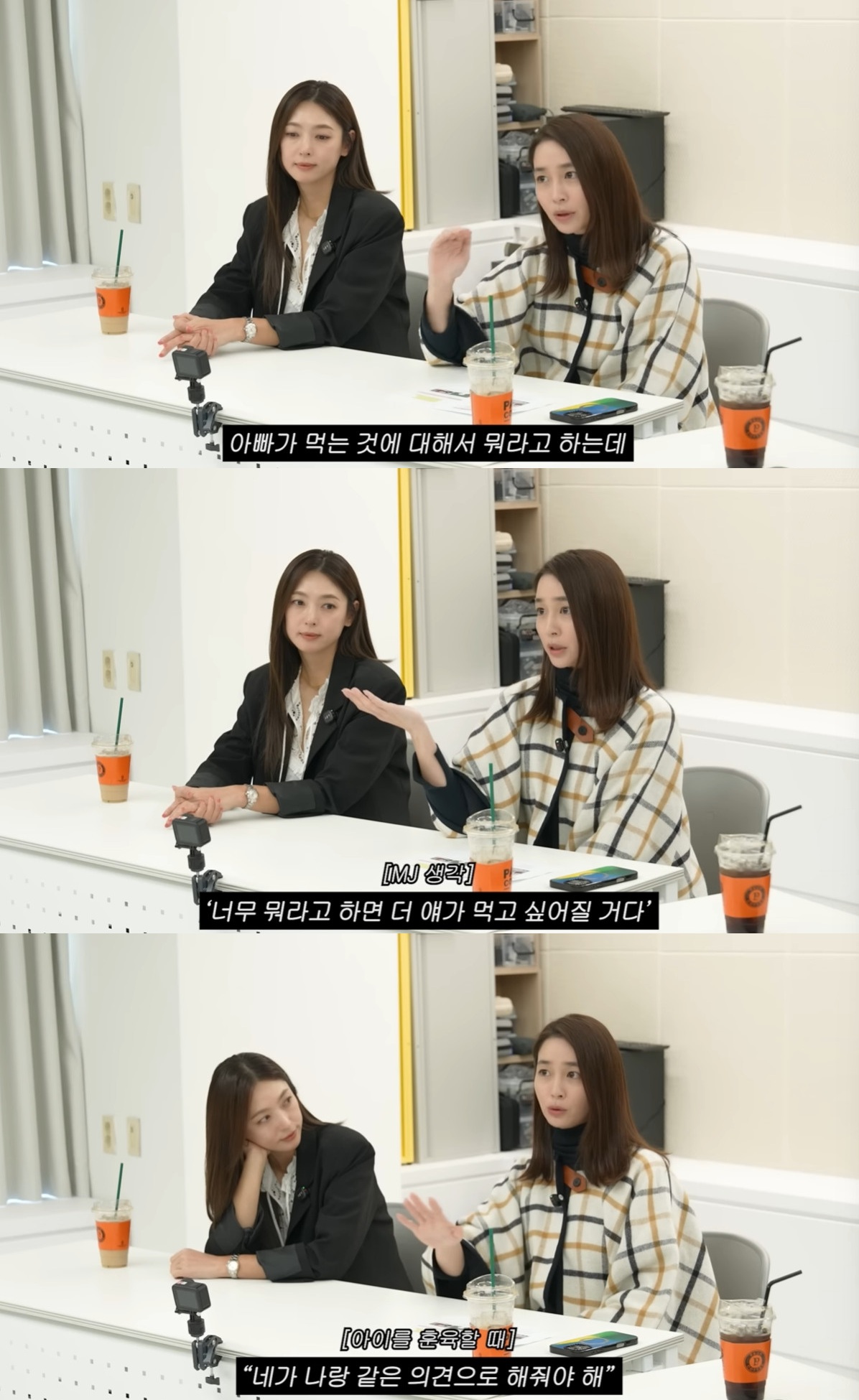 이민정은 "아빠(이병헌)가 먹는 것에 대해 뭐라고 하는데, 저는 너무 뭐라고 하면 더 애가 먹고 싶어질 거라고 한다"며 고민을 털어놨다. 그는 "아빠와 그거에 대해 의견을 맞추자고 이야기 한다. 그런데 난 풀어주자고 하고 남편은 아니라고 한다"고 밝혔다.