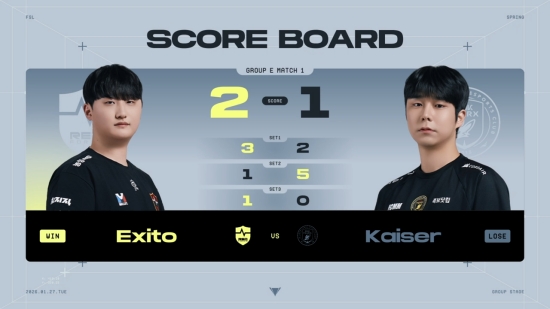 후반전 돌입 이후 동점 골을 작렬한 Kaiser. 하지만 Exito는 침착하게 추가 골을 넣으며 다시 격차를 벌렸고, 전후반 3대2로 1세트 승리를 가져갔다.