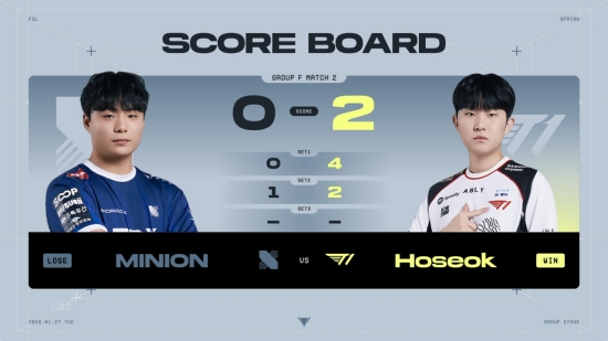 네 번째 경기는 DRX 'MINION' 조민혁 선수와 T1 'Hoseok’ 최호석 선수의 대결.