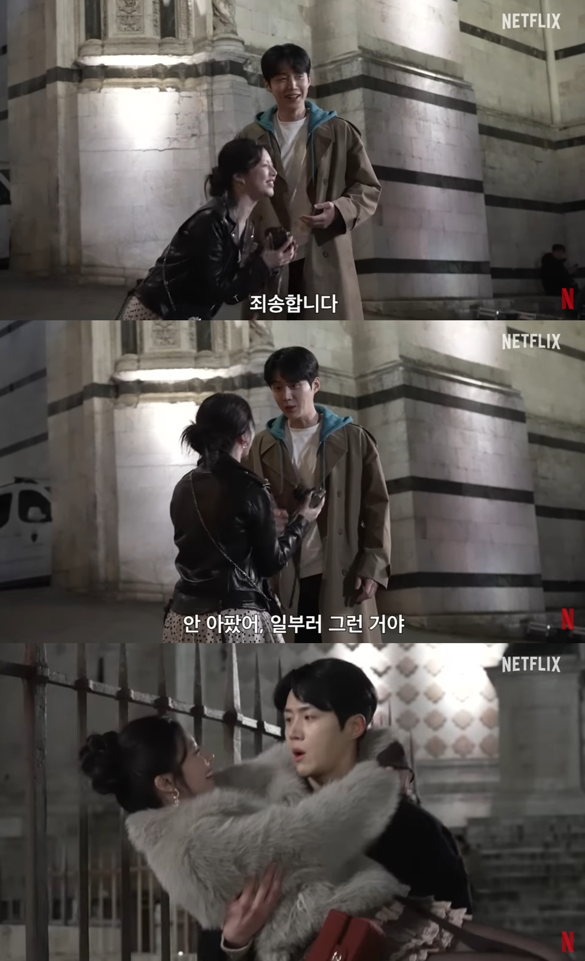넷플릭스 시리즈 '이 사랑 통역 되나요?' 배우 김선호와 고윤정의 이탈리아와 한국 현장이 담겨있는 가운데, 두 배우의 달달한 연기와 카메라 밖 귀여움이 담겨 눈길을 끈다.