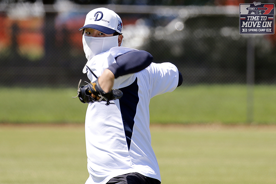 곽빈은 27일 호주 시드니 블랙타운 야구장 불펜 투구에서 31개의 공을 던졌다. 힘은 80% 수준으로 조절했던 가운데 구속 측정은 하지 않았다.