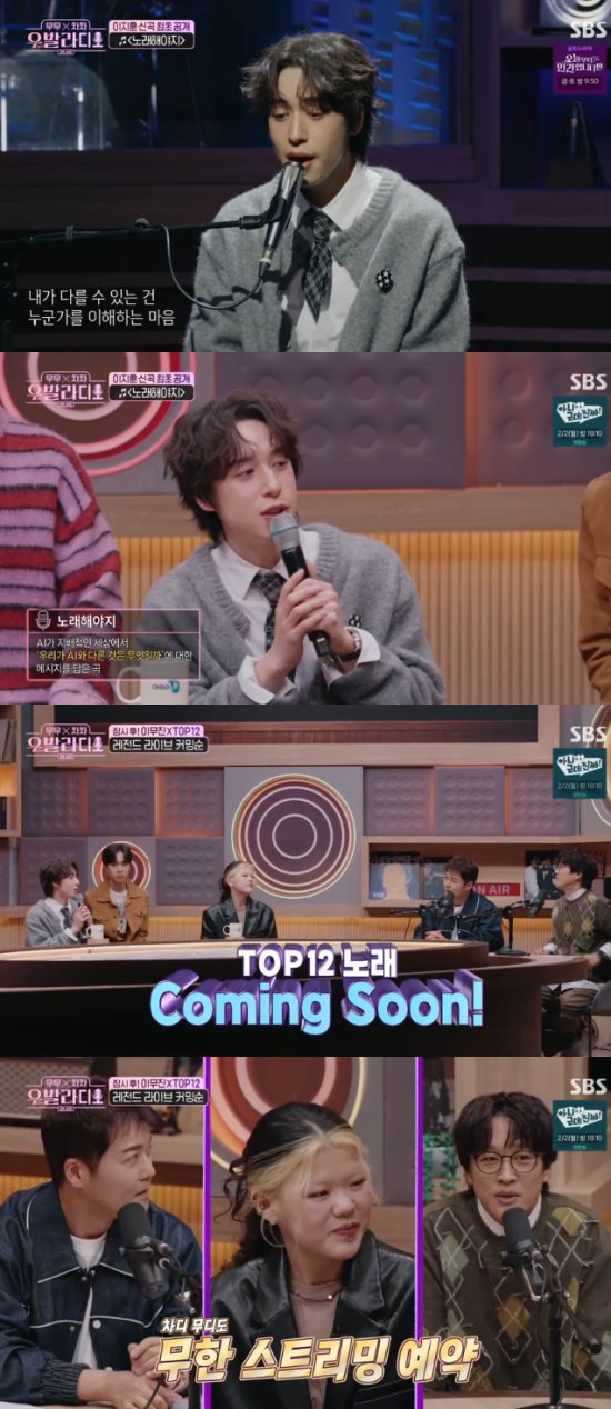 이날 방송에서 '우리들의 발라드' TOP2 이지훈이 신곡 '노래해야지'를 최초로 공개했다. 이지훈은 "AI 시대에서 잊지 말아야 할 사람들의 따뜻한 마음을 담은 곡"이라고 설명했다.
