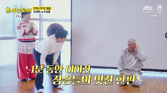 이후 본격적인 운동에 앞서 주짓수 8년 차 허경환과 추성훈의 즉석 대결이 펼쳐졌다. 추성훈은 "사실 나는 주짓수를 정식으로 배운 적은 없다"고 밝혔지만, 허경환은 "오늘은 형을 한 번 잡아보겠다"며 강한 승부욕을 드러냈다.