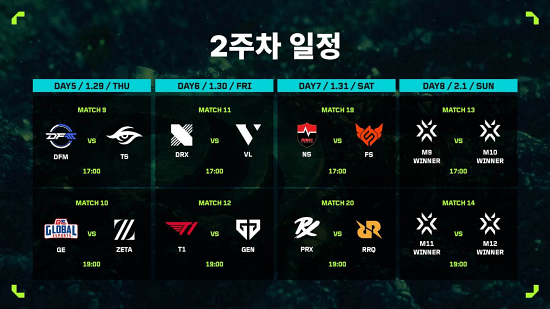 5대5 대전형 캐릭터 기반 전술 슈팅 게임 ‘발로란트’의 개발 및 유통사인 라이엇 게임즈는 29일(목)부터 2월 1일(일)까지 서울 마포구 상암동 SOOP 콜로세움에서 펼쳐지는 2026 VCT 퍼시픽 킥오프가 2주 차 일정에 돌입한다고 밝혔다.