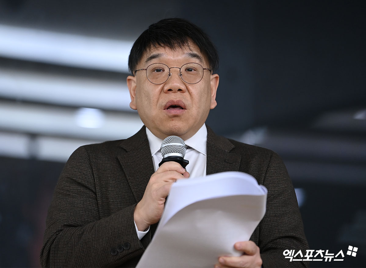 민희진 소송대리인 법무법인 지암 김선웅 변호사는 28일 오후 서울 종각 교원종각빌딩 챌린지홀에서 긴급 기자회견을 개최했다. 민희진은 이날 참석하지 않았다.