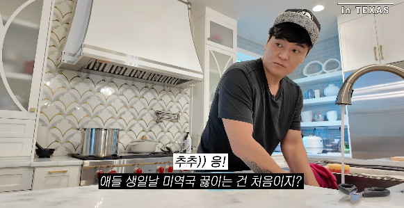 하원미는 "애들 생일 때 미역국 끓이는 건 처음이냐"며 추신수에게 질문했고, 추신수는 "응"이라고 답하며 오직 하원미만을 위해 미역국을 끓여 줬다는 사실을 인증했다.