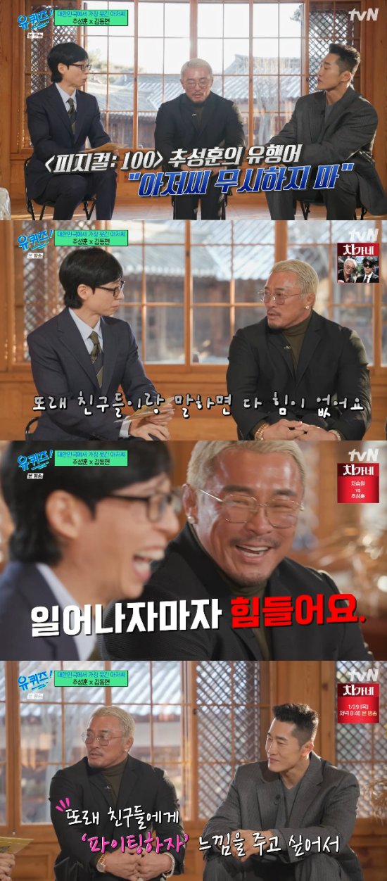 지난 28일 방송된 tvN 예능 프로그램 '유 퀴즈 온 더 블럭'에서는 이종격투기 선수 겸 방송인 추성훈, 김동현이 출연해 이야기를 나눴다.