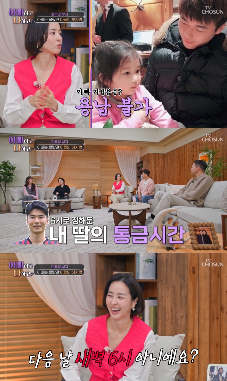 28일 방송된 TV조선 '아빠하고 나하고'에서는 현주엽이 아들의 첫사랑 고백에 놀라는 대화가 담겼다.