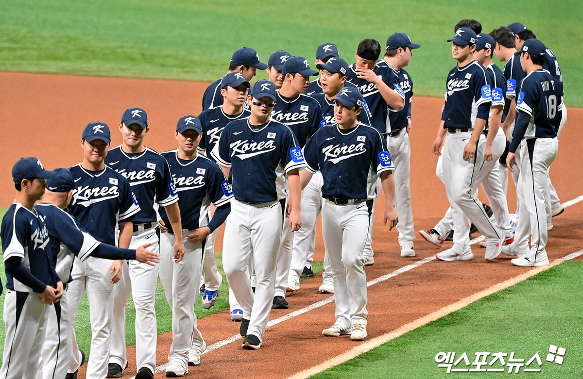 9일 오후 서울 구로구 고척스카이돔에서 열린 '2025 NAVER K-BASEBALL SERIES' 대한민국과 체코의 야구 국가대표팀 평가전 경기, 대한민국이 타선의 고른 활약에 힘입어 11:1의 스코어로 승리했다. 경기 종료 후 한국 선수들이 승리의 기쁨을 나누고 있다. 엑스포츠뉴스 DB