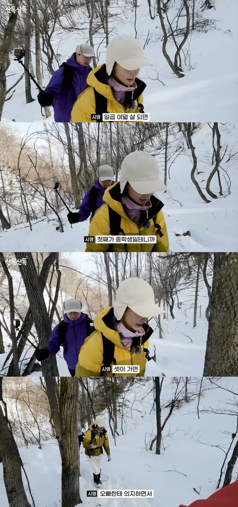 이날 이시영은 등산 유튜버 싼타와 함께 방태산을 오르며 깊은 속 마음을 꺼냈다.