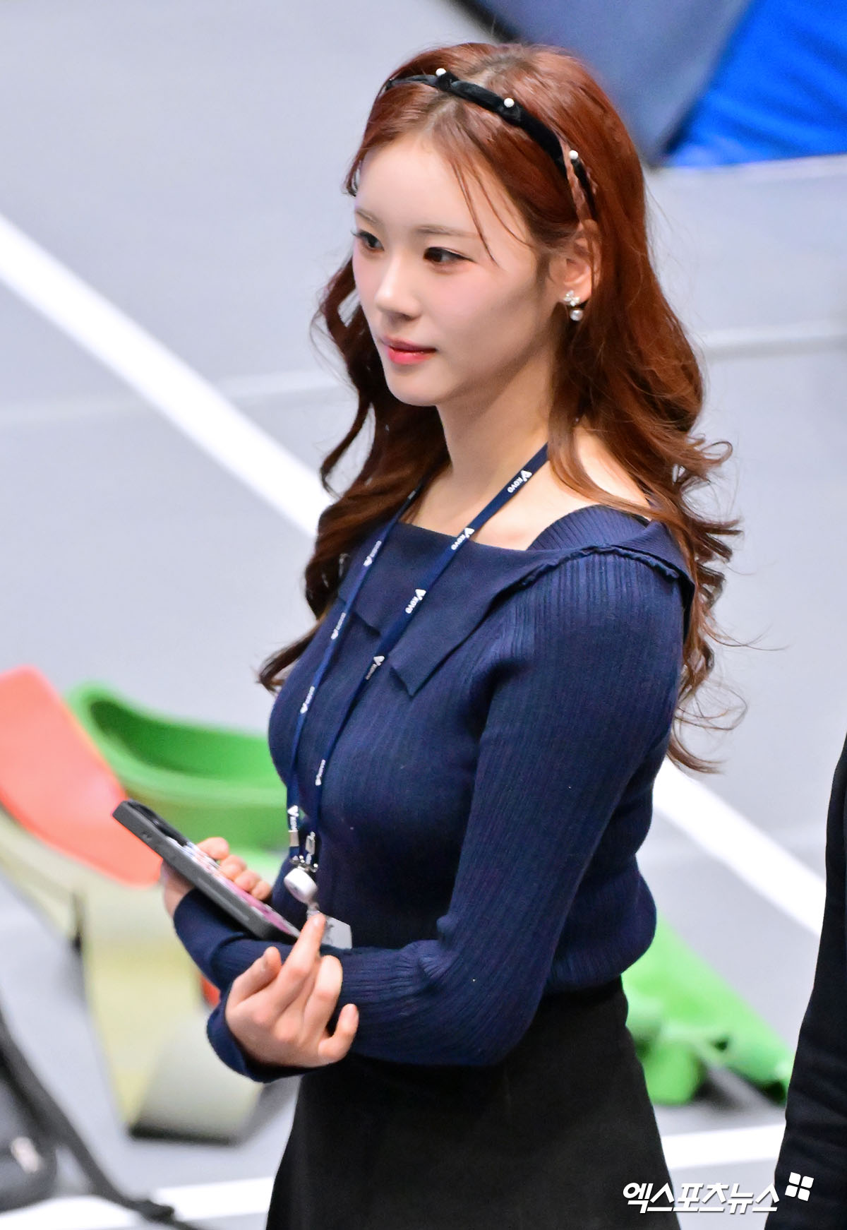 (엑스포츠뉴스 수원, 김한준 기자) 29일 오후 경기도 수원실내체육관에서 열린 '진에어 2025-2026 V-리그' 한국전력과 현대캐피탈의 경기, 전세연 아나운서가 미소를 보이고 있다.