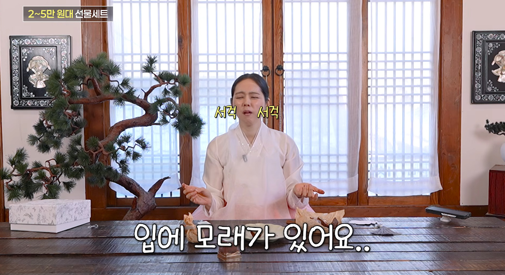 2~5만원대 설 선물을 소개하던 한가인은 모 브랜드의 찹쌀떡을 공유했다. 9구가 한 세트라는 찹쌀떡 상자 안에는 두바이 찹쌀떡이 있어 눈길을 끌었다.