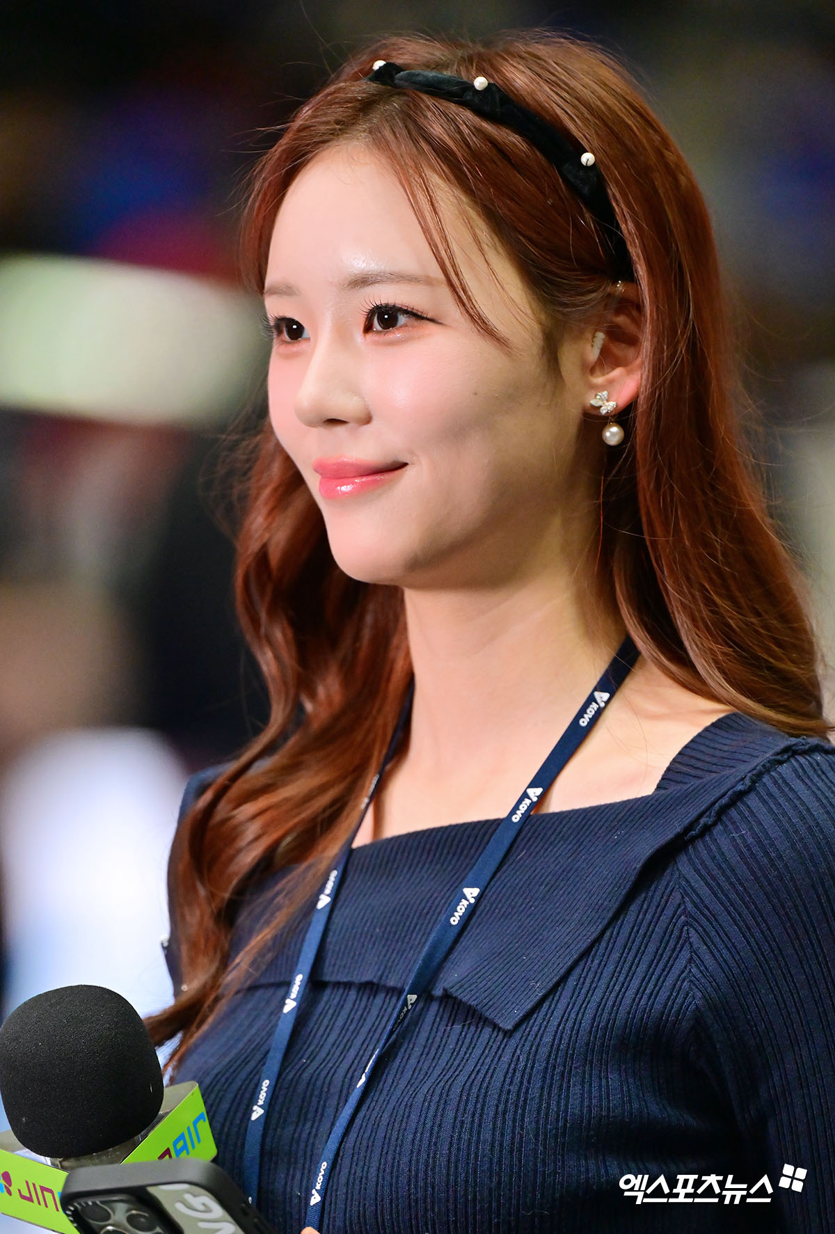 (엑스포츠뉴스 수원, 김한준 기자) 29일 오후 경기도 수원실내체육관에서 열린 '진에어 2025-2026 V-리그' 한국전력과 현대캐피탈의 경기, 경기 전 KBSN 전세연 아나운서가 현장 리포팅 준비를 하고 있다.