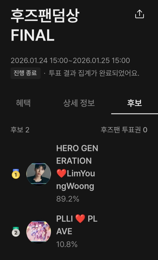 (엑스포츠뉴스 이정범 기자) 임영웅이 후즈팬덤상 투표 1위를 차지했다.