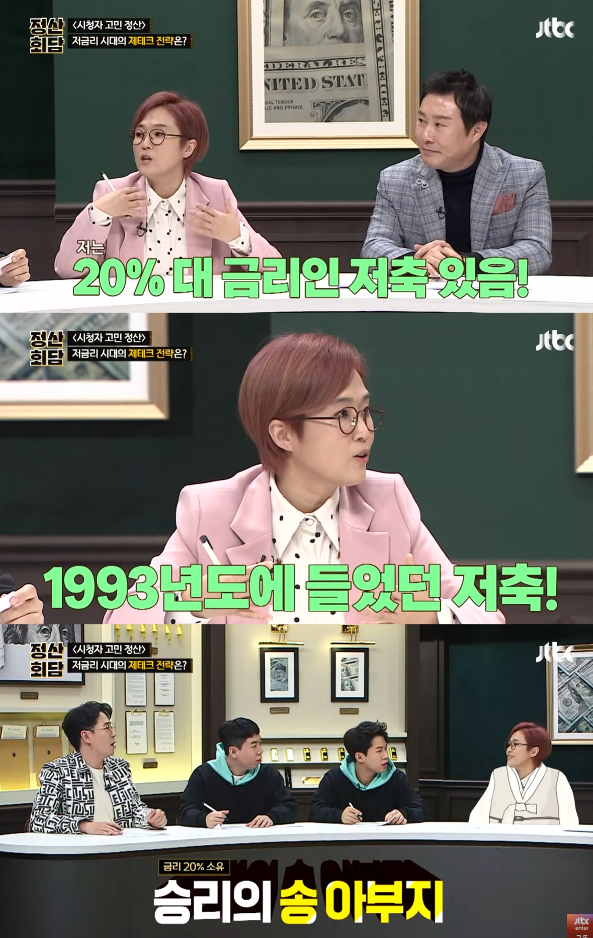 송은이는 "그 당시 20%의 적금 이율이었는데 감가 되어서 지금 십몇 퍼센트의 이율이더라. 그런데 금액이 크지 않기 때문에 (노후 준비까지는 아니다) 그런데 내가 꾸준히 했다는 거다"라고 해명했다.