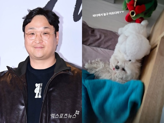 공개된 영상에는 파란색 수건을 덮고 누워 있는 반려견 꽃분이의 모습이 담겨 있어 걱정을 자아낸다.