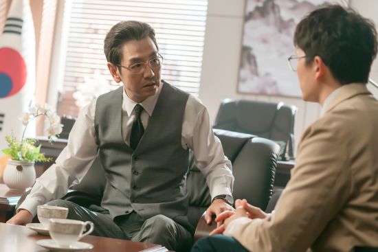 새로운 대법원장을 인선을 두고 이한영과 강신진의 동상이몽이 충돌하는 가운데, 30일(오늘) 공개된 스틸에서는 두 사람이 각자의 목적이 담긴 만남을 갖고 있어 관심을 집중시킨다.