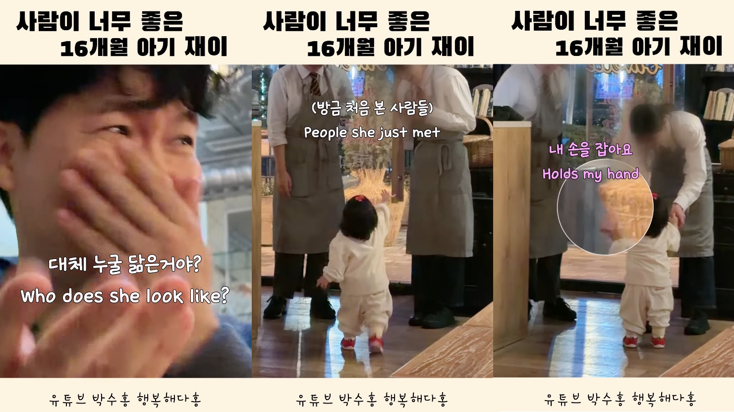 영상에는 '식당에 있는 모든 사람들에게 이랬던 것은 안 비밀'이라는 글과 함께 여러 사람들의 손을 잡으러 다니는 재이의 모습이 공개 돼 귀여움을 자아냈다.