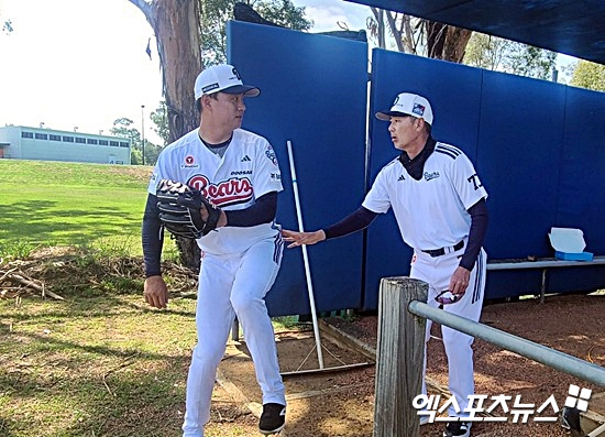 (엑스포츠뉴스 시드니, 김근한 기자) 두산 베어스 투수 이영하가 2026시즌 선발 복귀를 위한 열정을 불펜 투구에서 쏟아부었다. 두산 김원형 감독이 뜯어말릴 정도로 열정적인 투구를 선보인 이영하는 가장 일찍 불펜 투구장에 들어와 가장 늦게 자리를 떴다.