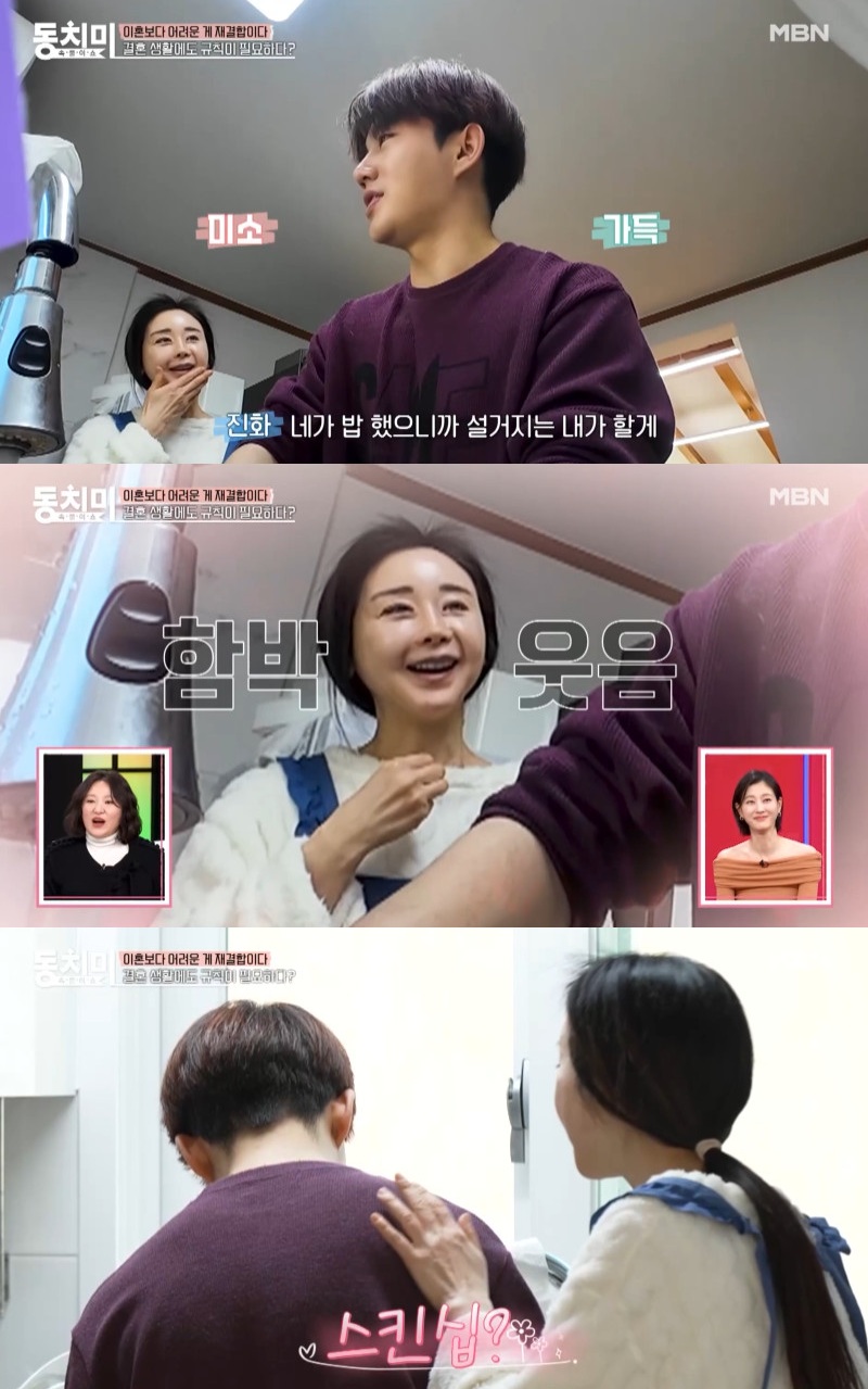 이어 두 사람의 한집살이 일상이 선공개됐다. 진화는 "그릇이 많네. 내가 설거지 하겠다. 네가 밥 했으니 설거지는 내가 하겠다"고 나섰고, 함소원은 "고마워"라며 함박 미소를 지었다.