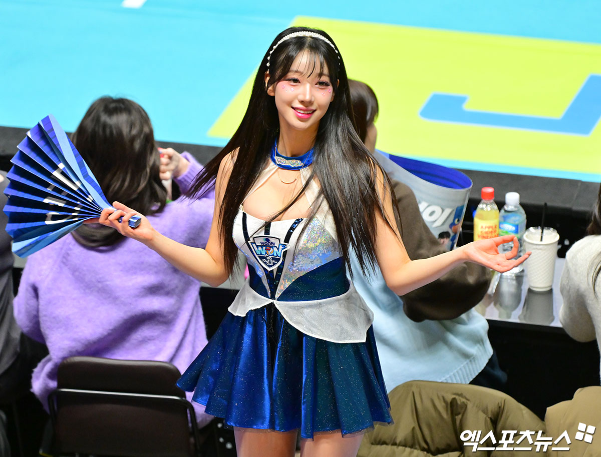 (엑스포츠뉴스 장충, 김한준 기자) 30일 오후 서울 장충체육관에서 열린 '진에어 2025-2026 V-리그' 우리카드와 삼성화재의 경기, 우수한 치어리더가 열띤 응원을 선보이고 있다.