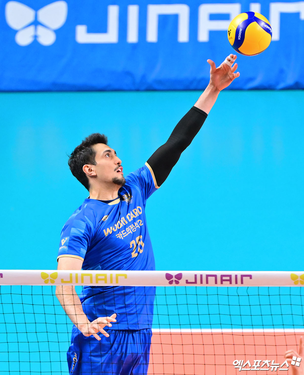 (엑스포츠뉴스 장충, 김한준 기자) 30일 오후 서울 장충체육관에서 열린 '진에어 2025-2026 V-리그' 우리카드와 삼성화재의 경기, 우리카드 아라우조가 공격을 시도하고 있다.