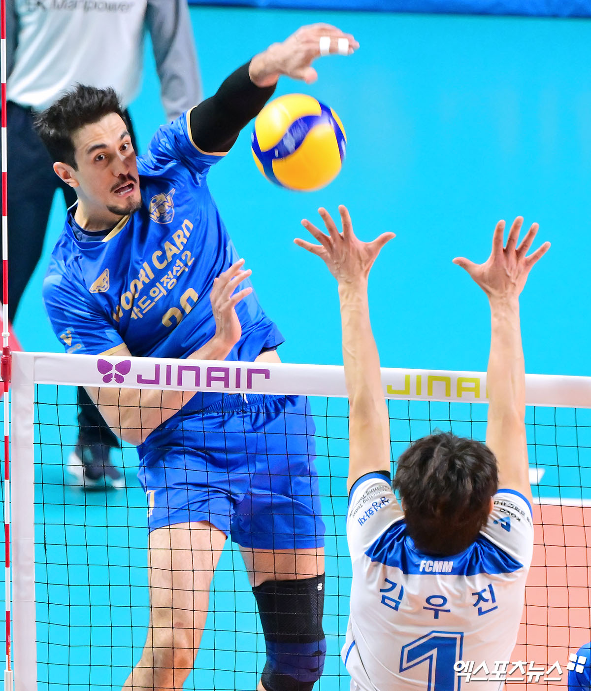(엑스포츠뉴스 장충, 김한준 기자) 30일 오후 서울 장충체육관에서 열린 '진에어 2025-2026 V-리그' 우리카드와 삼성화재의 경기, 우리카드 아라우조가 공격을 시도하고 있다.